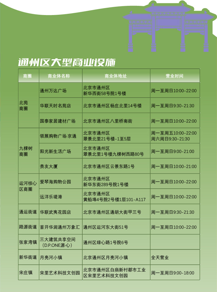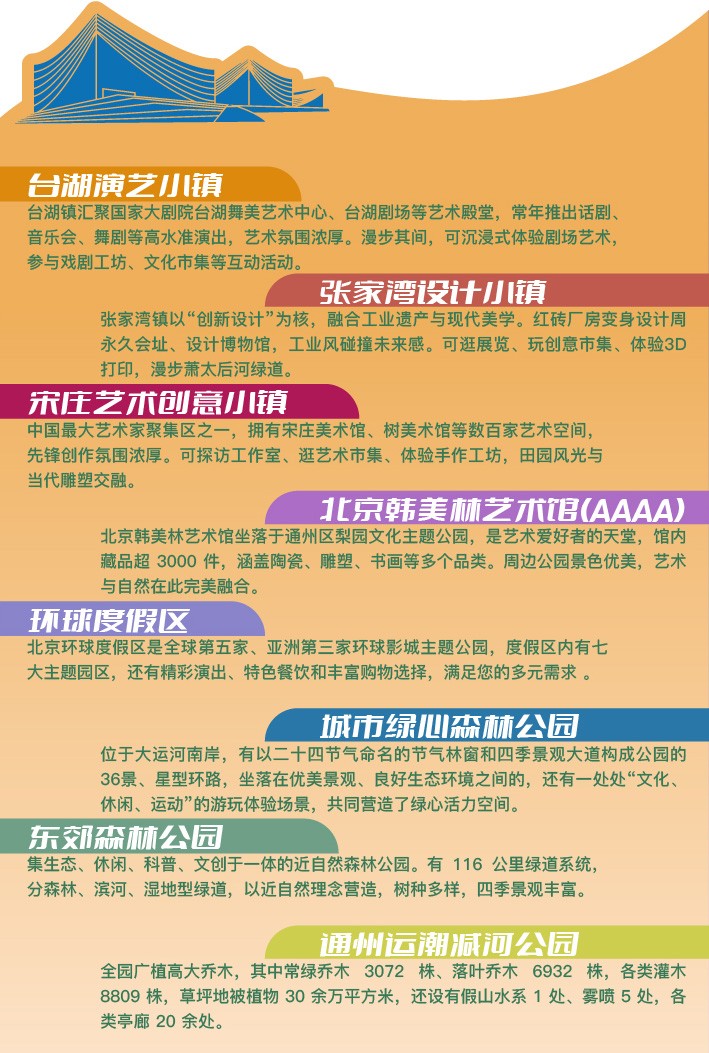 该手册推荐了2025通州春夏时节十大必玩地,介绍了非常详细的重点文旅活动日历、多条精品文旅路线、公园景区攻略,还给出了通州区大型商业设施、特色美食商家和品质住宿商家信息表。